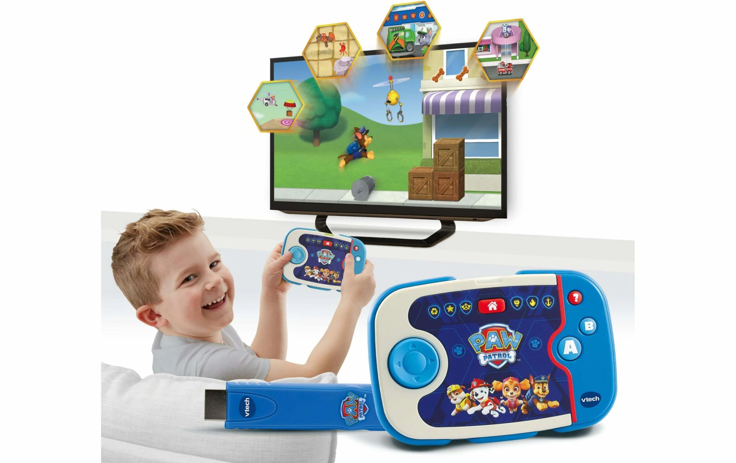 – Console d’apprentissage TV la pat patrouille pour les enfants d’âge préscolaire et primaire, comprenant une manette et une clé HDMI