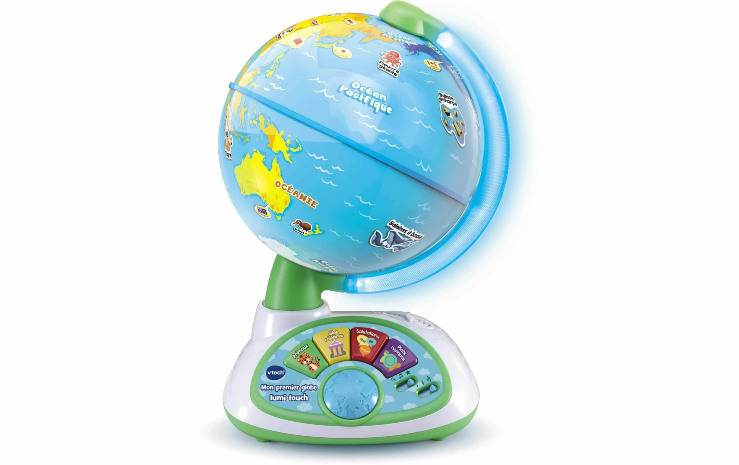 – Globe interactif qui s’illumine, tourne et contient une foule d’informations intéressantes sur les animaux et les cultures du monde